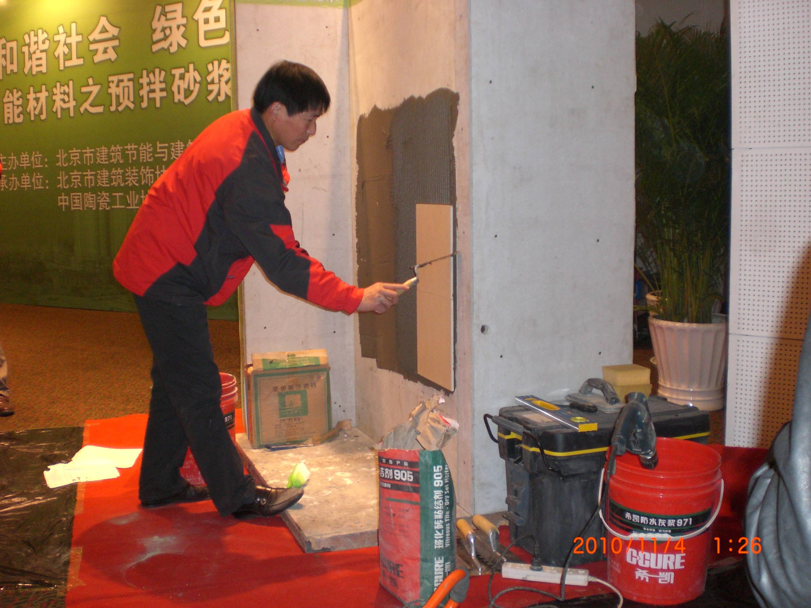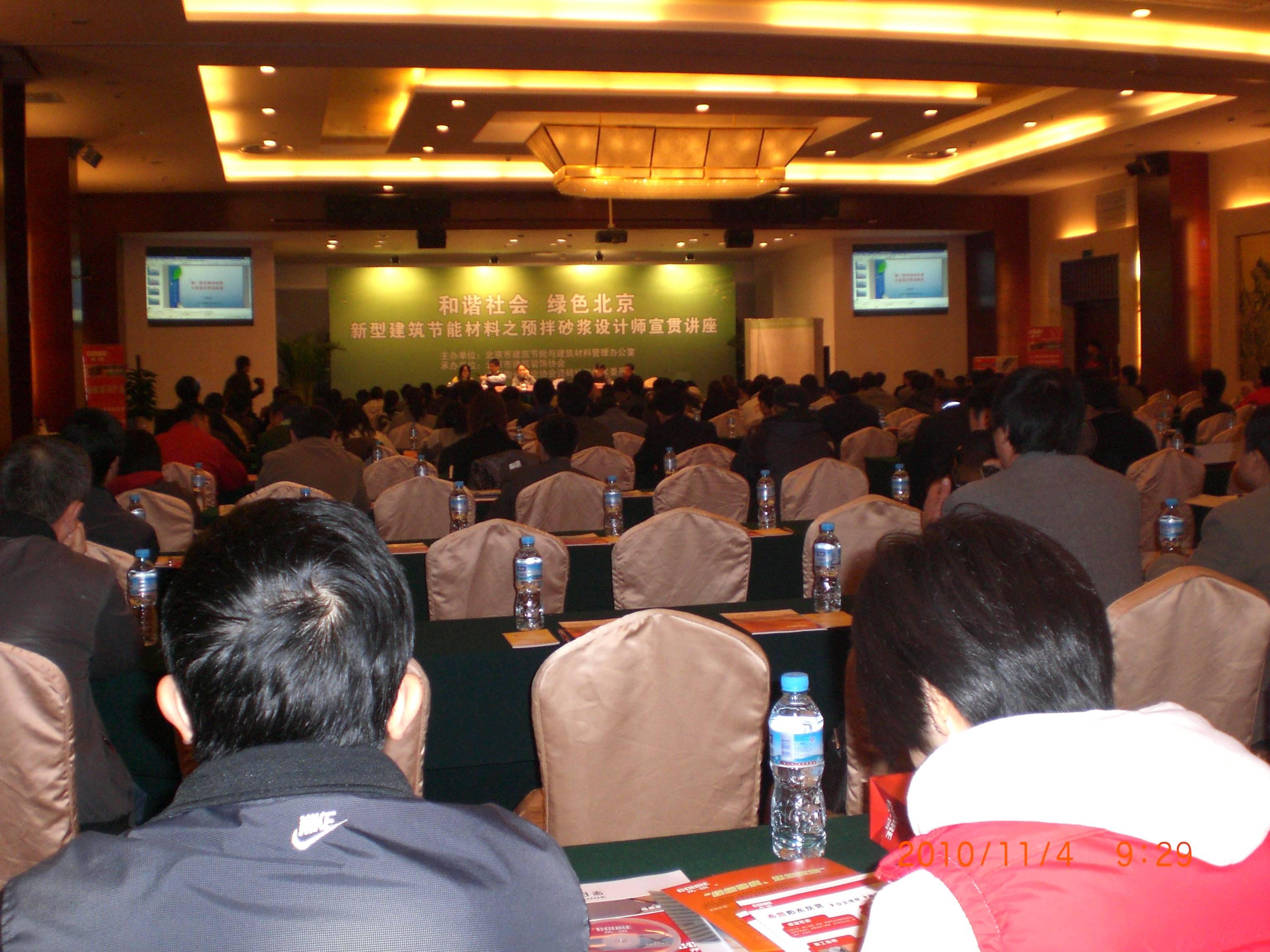 2010年11月4、5號(hào),由北京市建筑節(jié)能與建筑材料管理辦公室主辦,中國陶瓷工業(yè)協(xié)會(huì)瓷磚粘貼技術(shù)專業(yè)委員會(huì)、北京市建筑裝飾協(xié)會(huì)承辦的“和諧社會(huì)、綠色北京新型建筑節(jié)能材料之預(yù)拌砂漿設(shè)計(jì)師宣貫講座”在北京萬壽賓館順利舉行。