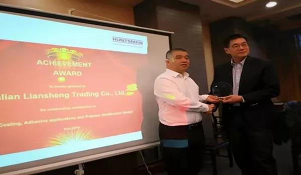 2019年2月25日-26日,亨斯邁功能產(chǎn)品事業(yè)部經(jīng)銷商大會在南京綠地洲際酒店舉行。會上,亨斯邁功能產(chǎn)品事業(yè)部亞太區(qū)總裁明大偉先生為大連連晟頒發(fā)了“貢獻獎”獎杯。以表彰大連連晟在2018年度為亨斯邁功能類產(chǎn)品在國內(nèi)市場的銷售所做出的努力。