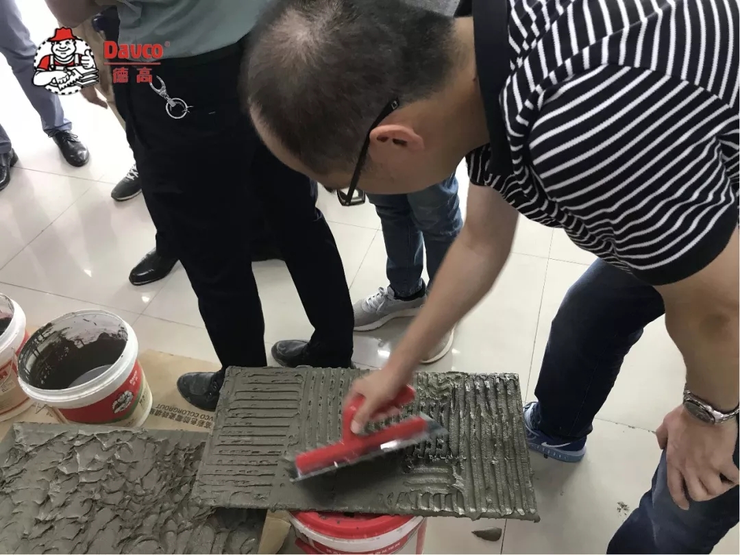同時(shí),德高通過(guò)有趣的互動(dòng)向客戶展示了品質(zhì)領(lǐng)先業(yè)內(nèi)的薄抹灰砂漿、高流動(dòng)性地面找平砂漿的施工優(yōu)勢(shì),并讓客戶親自動(dòng)手,體驗(yàn)剛性、柔性防水涂料質(zhì)感的差異,從而更直觀、更深入地了解產(chǎn)品。