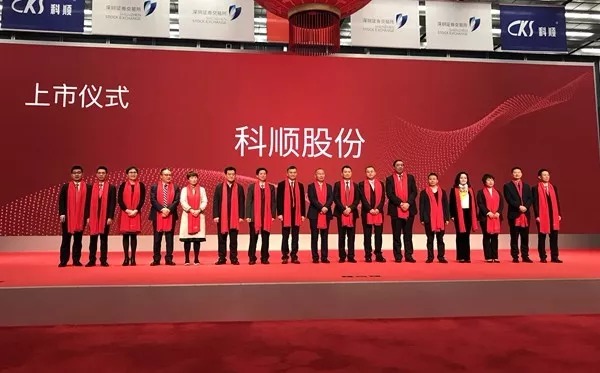 2018年1月25日,伴隨著響亮的敲鐘聲,科順防水科技股份有限公司正式在深交所創(chuàng)業(yè)板掛牌上市,股票簡稱“科順股份”,股票代碼“300737”。成為了繼東方雨虹、凱倫股份之后,第三家主營業(yè)務(wù)全部為防水材料制造與防水工程施工的上市防水企業(yè)。