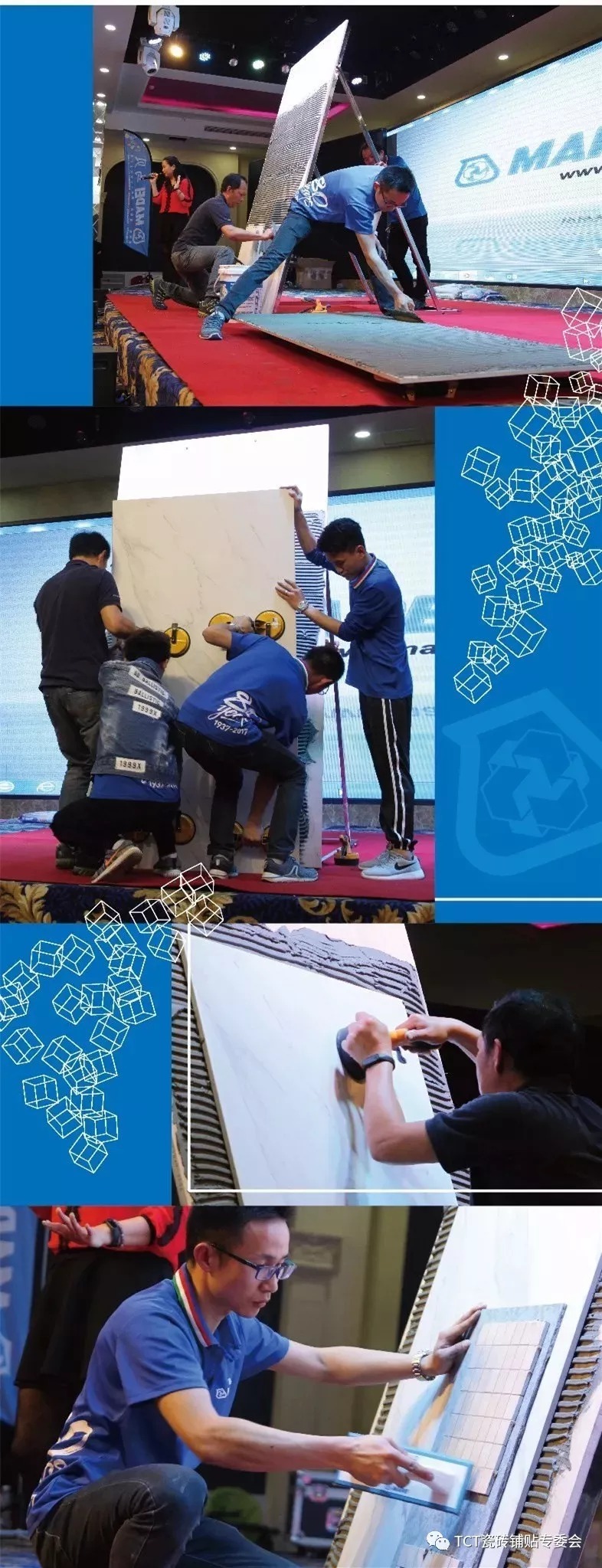 現(xiàn)場理論結(jié)合實際的施工演示,馬貝技術(shù)部現(xiàn)場進行了使用馬貝瓷磚膠101T+馬貝乳液112粘貼900x1800mm規(guī)格的薄板,給到現(xiàn)場的客戶朋友們一個最直觀的感受。