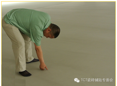 5、給素地補(bǔ)充適量的水分,使素地吸水達(dá)到飽和狀態(tài)后掃除地面多余的明水。