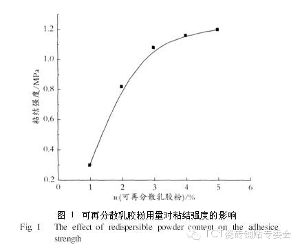 可再分散乳膠粉作為膩子的主要膠粘劑,其用量對膩子的粘結強度具有顯著的影響。圖1為可再分散乳膠粉用量與粘結強度的關系。