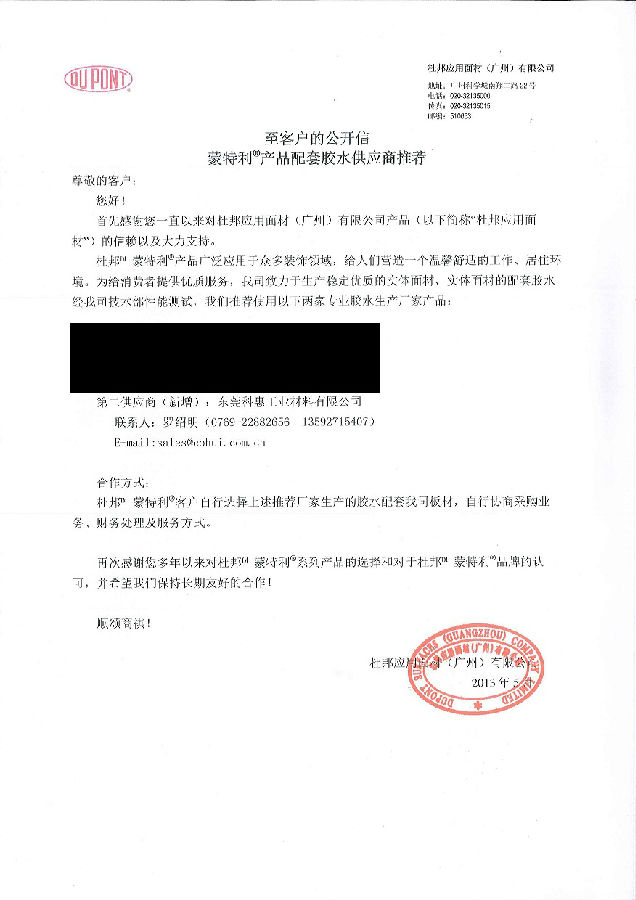 企業(yè)獲得美國杜邦-蒙特利官方配套認(rèn)證,產(chǎn)品用于萬科精裝項目