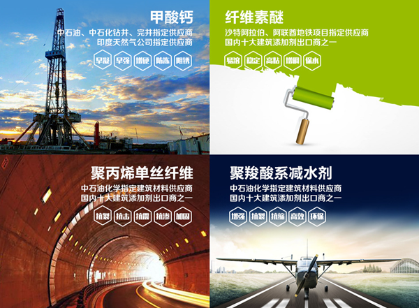 公司具有豐富的產(chǎn)品線:涂料級與建材級纖維素醚;可再分散乳膠粉;早強(qiáng)劑甲酸鈣;高效減水劑;環(huán)保型成膜助劑;高效能環(huán)保防腐殺菌劑;各類液體和粉體分散劑、消泡劑;硅藻泥專用纖維素醚、聚丙烯纖維,隔熱反射顏料等。